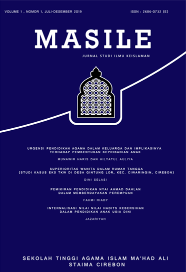 Artikel ini adalah mendeskripsikan dan menjelaskan implementasi pendidikan nilai moderasi agama di kelas X SMK Gula Rajawali Madiun dan kontribusi pendidikan nilai moderasi agama terhadap moralitas siswa di kelas X SMK Gula Rajawali Madiun. Untuk eksplorasi data dari lapangan yang lebih jelas, maka peneliti menggunakan pendekatan kualitatif dengan jenis penelitian studi kasus. Teknik pengumpulan datanya dengan teknik wawancara, observasi, dan dokumentasi. Sedangkan teknik analisa data yang digunakan adalah reduksi data (data reduction), penyajian data (data display), dan penarikan kesimpulan (conclusion). Hasil penelitian menunjukkan bahwa, pertama, implementasi pendidikan nilai moderasi agama di kelas X TMI SMK Gula Rajawali Madiun dapat dilihat dari nilai ibadah di SMK Gula Rajawali Madiun dilakukan bilhal (dengan tingkah laku), dan praktis. Perkembangan penanaman nilai ini mampu masuk ke dalam diri siswa, buktinya adalah siswa akan menjadi rajin beribadah. Nilai akhlak di SMK Gula Rajawali Madiun dilakukan dengan perenungan kebesaran ciptaan Allah. Kedua, Kontribusi pendidikan nilai moderasi agama terhadap moralitas siswa di kelas X TMI SMK Gula Rajawali Madiun yakni siswa menjadi lebih dewasa, tahu mana yang benar dan salah menurut ajaran agama, selain itu sikap, perbuatan dan tingkah laku siswa menjadi lebih terkendali karena mereka didasari dengan pengetahuan agama dan nilai-nilai yang diterapkan dalam kehidupan sehari-hari.